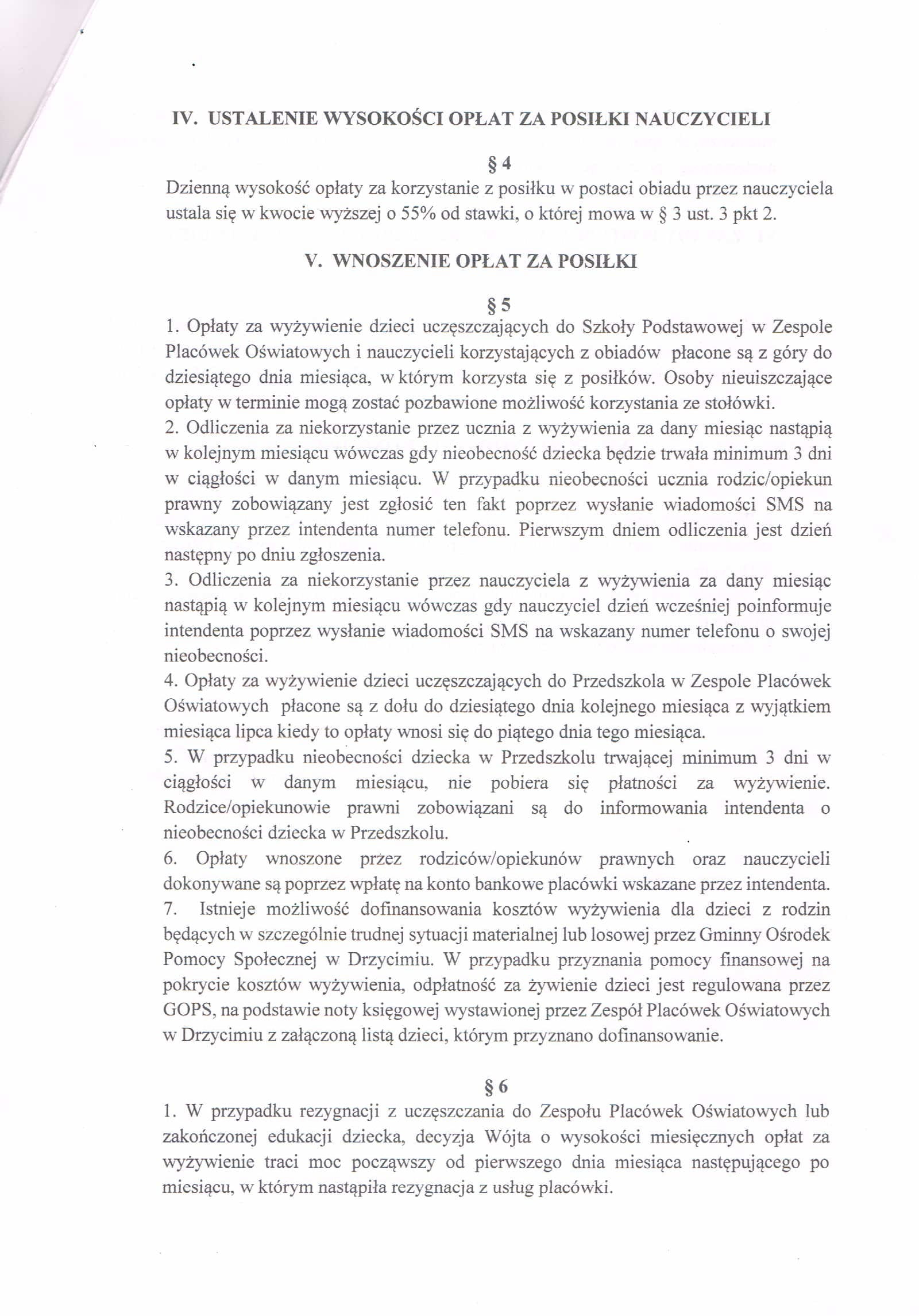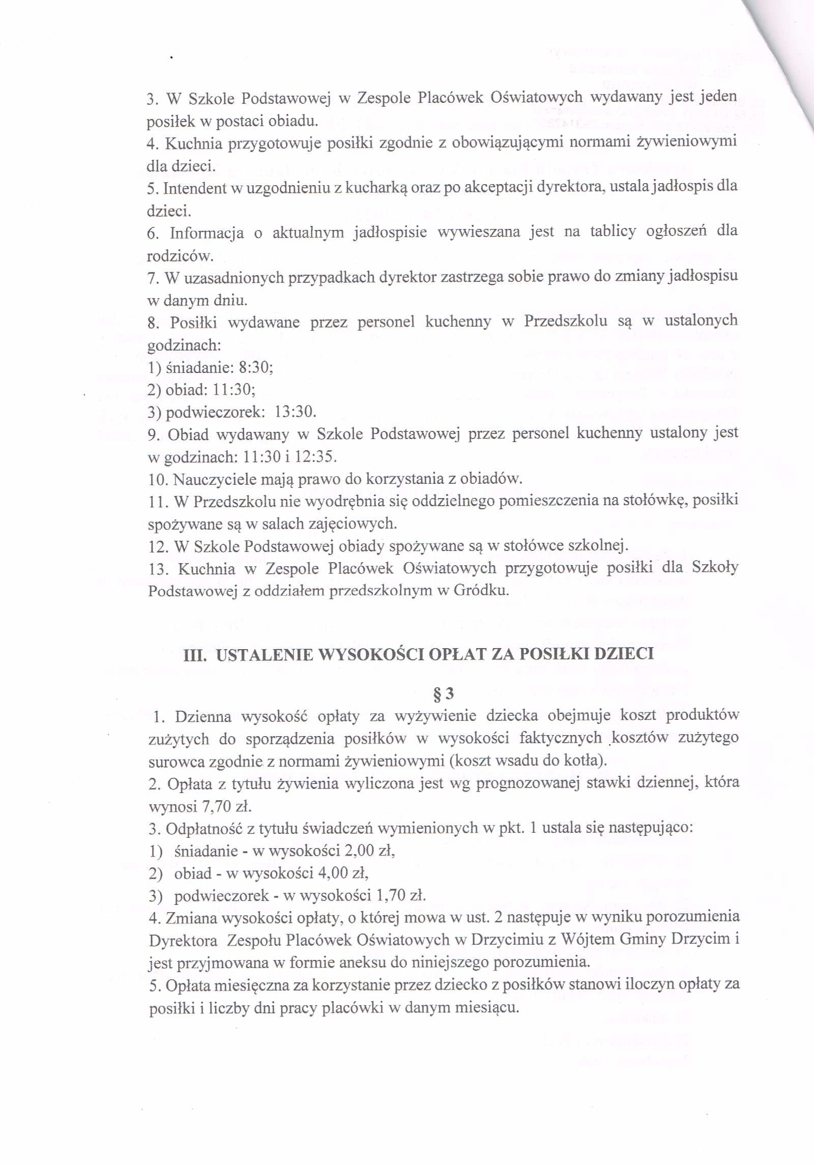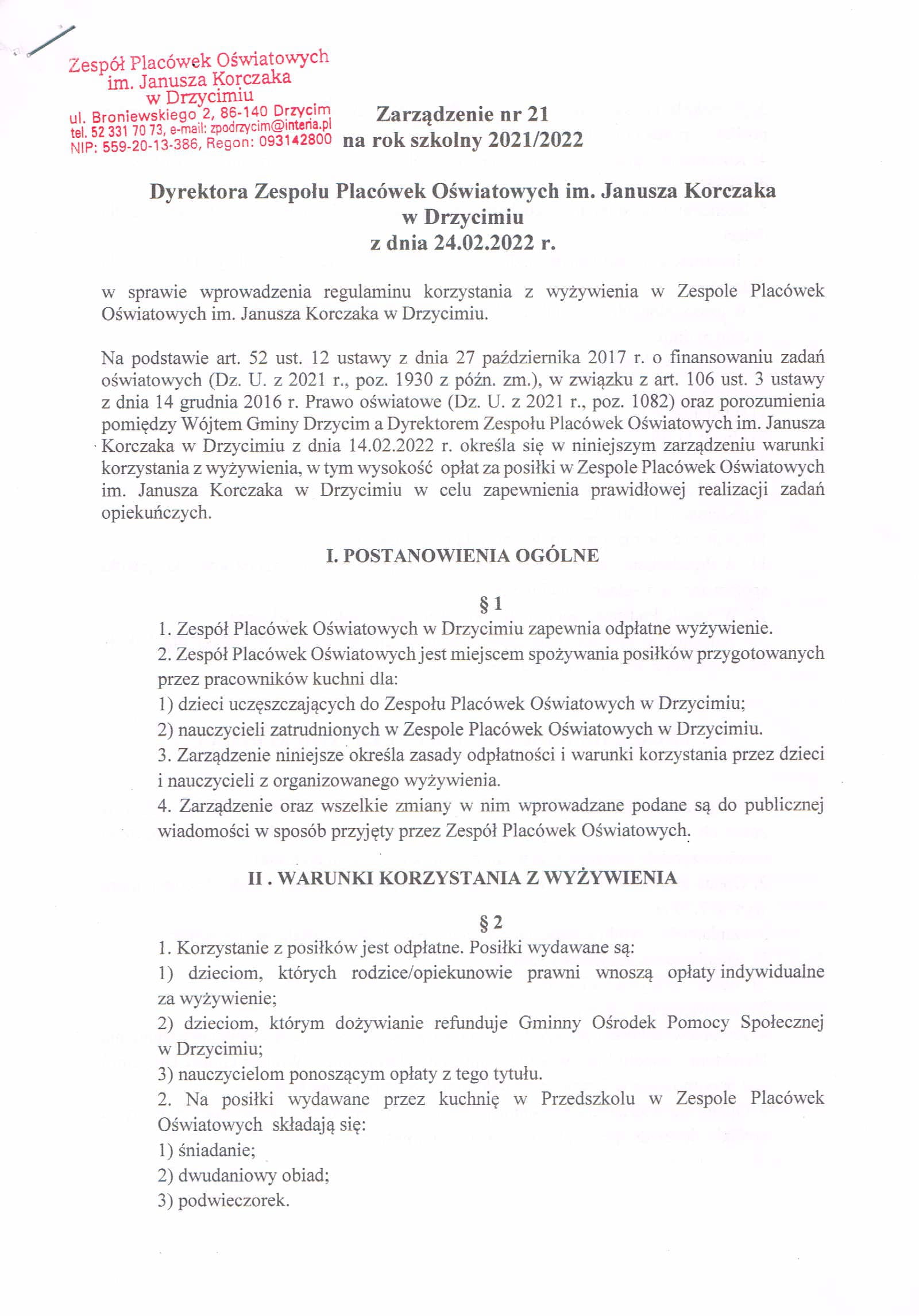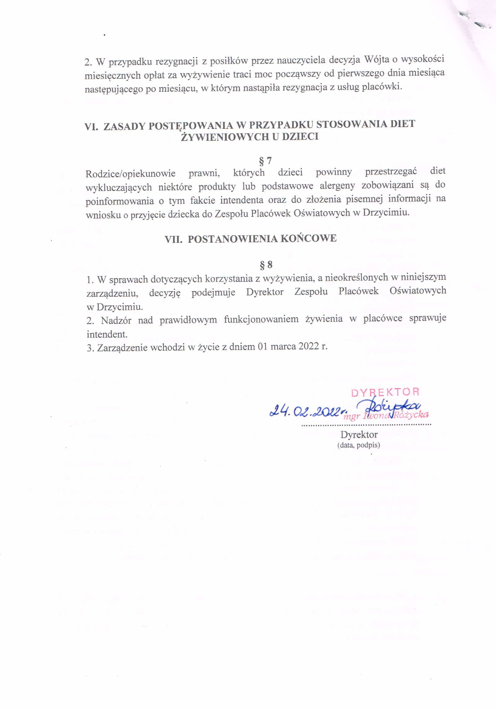 Zarządzenie w sprawie posiłków